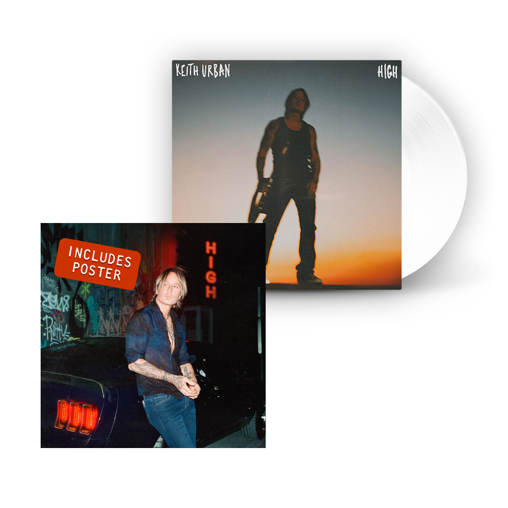 Keith's new album HIGH pressed on exclusive opaque white vinyl and includes an 11"x11" poster.