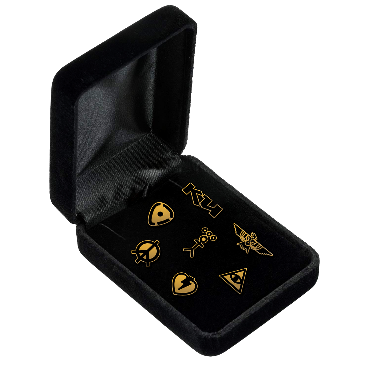 Collect the set! Featuring all seven icon designs in a custom velvet box.